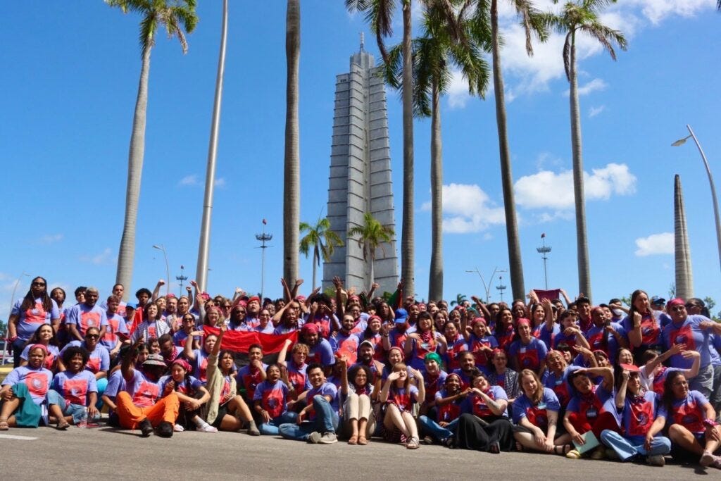 More recently, from April 24 to May 3, over 150 young organizers from the United States traveled to Cuba as part of a brigade organized by the International Peoples’ Assembly (IPA) to learn about the Cuban process and stand in solidarity with the island nation against the “criminal” US blockade. The organizers returned to the US with an even greater commitment to continue building their revolution at home and to fight for the end of the blockade of Cuba.